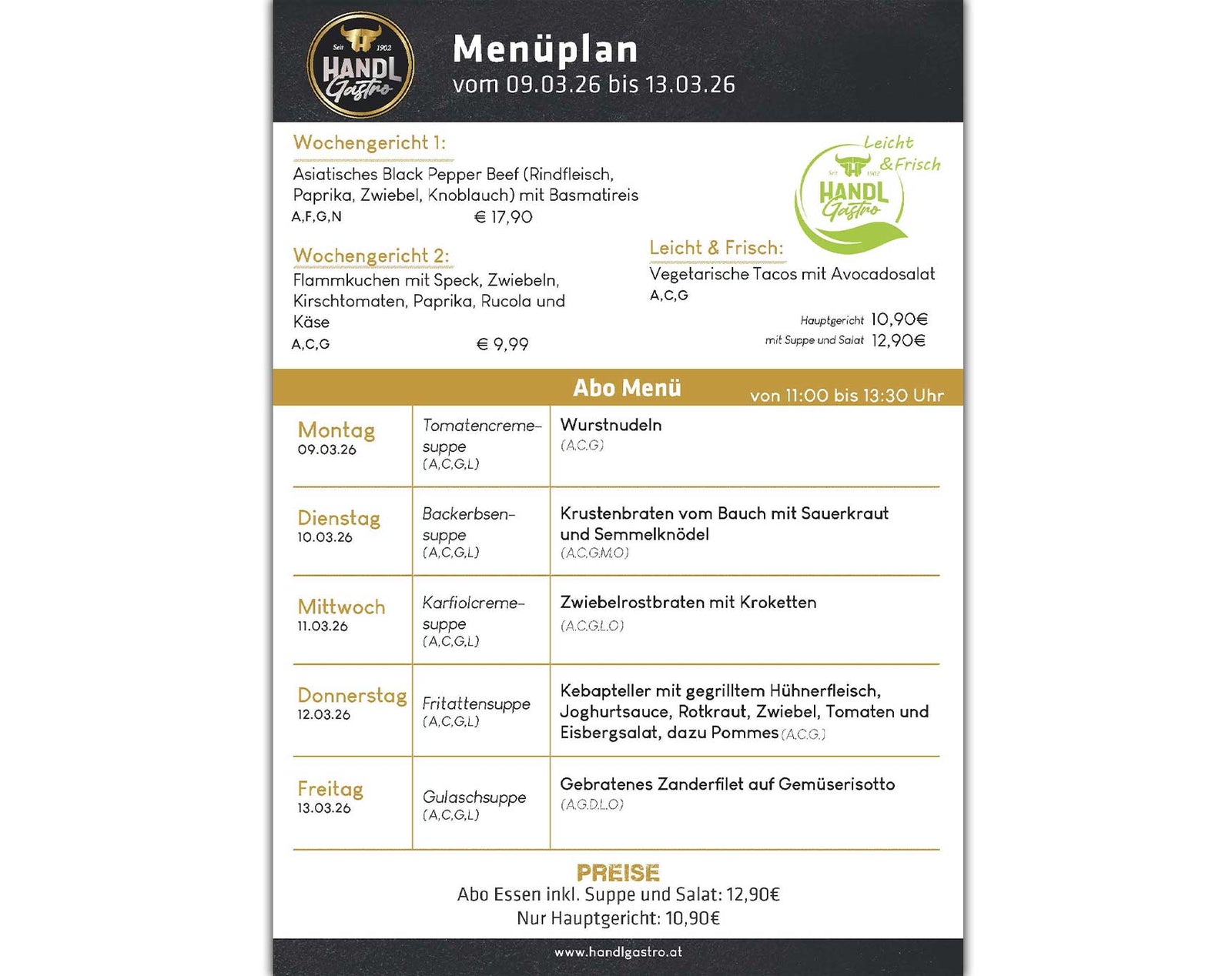Das neue "Leicht&Frisch" Menü wechselt wöchentlich und bietet eine Auswahl an leichteren Gerichten.